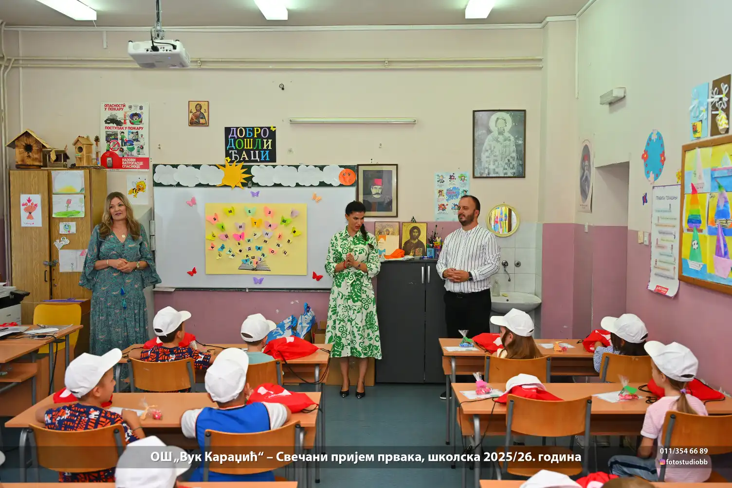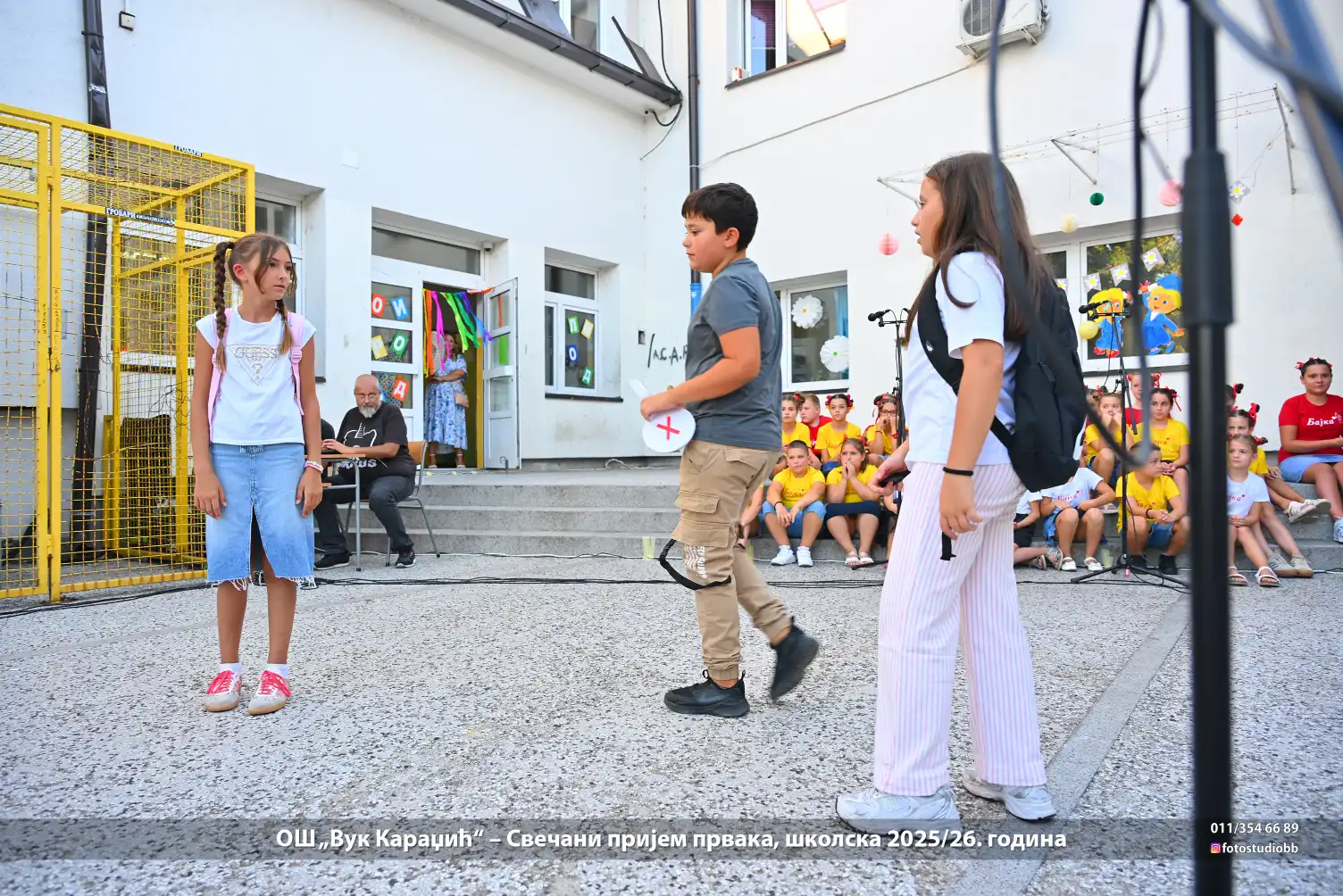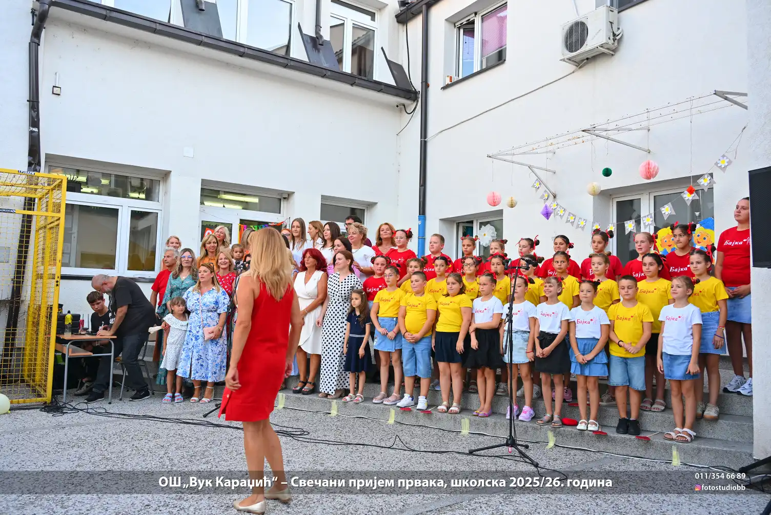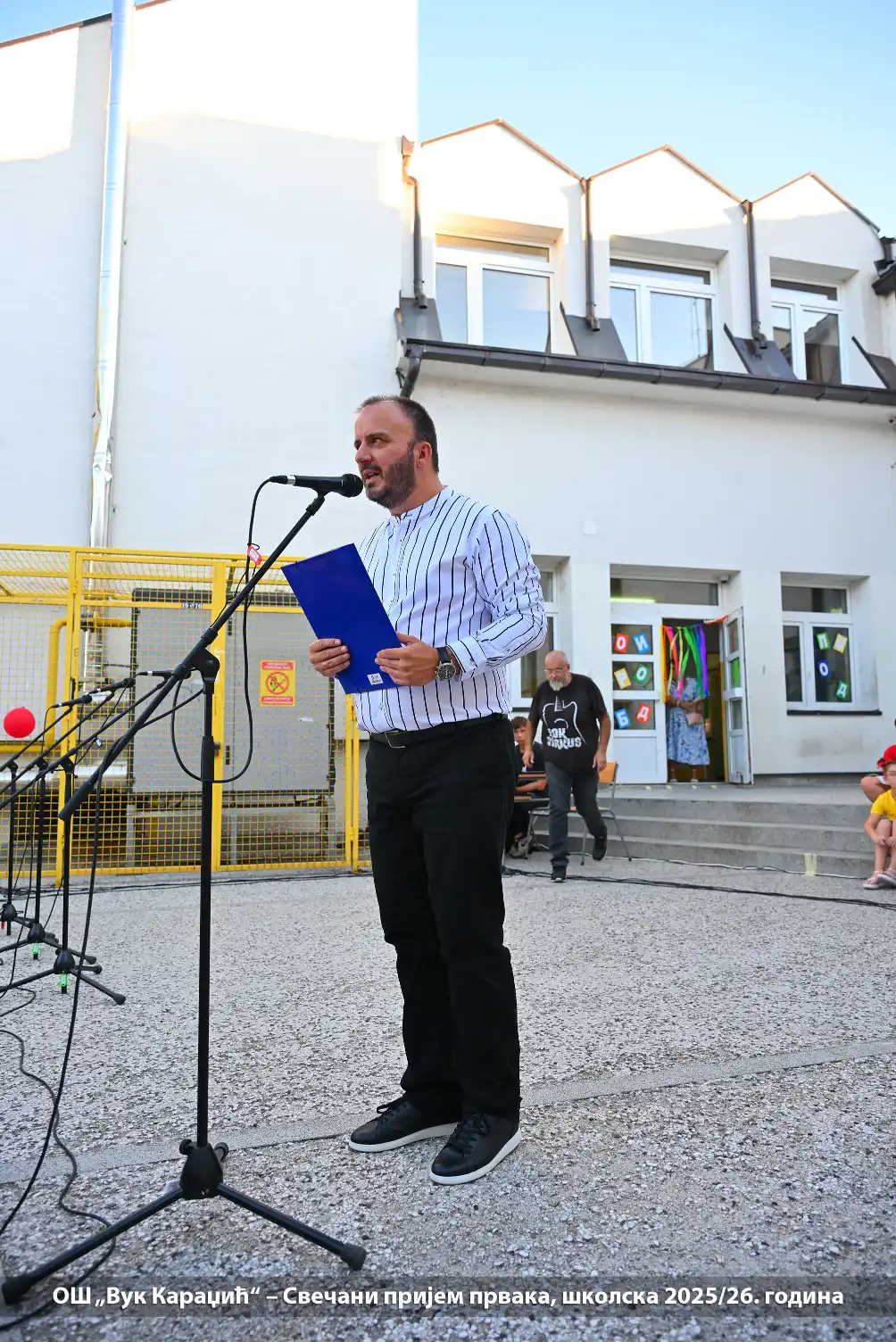 Родитељима се обратио заменик директорке школе Михајло Микић, а представница општине поделила је првацима пакетиће, након чега су упознали своје учитељице и заједно са њима крочили у учионице.